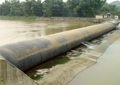 橡膠壩使用壽命短(橡膠壩采用的是再生橡膠原料,壩袋易老化,容易被上游漂浮物或尖銳物損壞,從而降低使用壽命);運行管理難度大(洪水過后一旦壩面淤積較厚,要求人工清理,否則壩袋不能正常升起蓄水,增加了后期的人工費用)。充水式橡膠壩冬季冰凍容易損壞壩袋,而充氣式橡膠壩不能調節壩高。